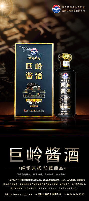 貴州巨嶺酒業(yè)有限公司,座落于聞名世界的古鎮(zhèn),國酒之鄉(xiāng)“茅臺鎮(zhèn)”。與“國酒茅臺”共享得天獨厚的氣候、土壤、水源、以及微生物群等自然資源;《巨嶺酒業(yè)》老作坊前身“巨嶺燒坊”,經(jīng)過多年的傳承,秉承先輩們代代相傳的古法釀造工藝,歷經(jīng)幾代人的延續(xù)和釀酒發(fā)展,奠定了《巨嶺酒業(yè)》發(fā)展的堅實基礎。貴州巨嶺酒業(yè)有限公司,座落于聞名世界的古鎮(zhèn),醬酒之鄉(xiāng)“茅臺鎮(zhèn)”。與“貴州茅臺酒”共享得天獨厚的氣候、土壤、水源、以及微生物群等自然資源;《巨嶺酒業(yè)》老作坊前身“巨嶺燒坊”,經(jīng)過多年的傳承,秉承先輩們代代相傳的古法釀造工藝,歷經(jīng)幾代人的延續(xù)和釀酒發(fā)展,奠定了《巨嶺酒業(yè)》發(fā)展的堅實基礎。 |